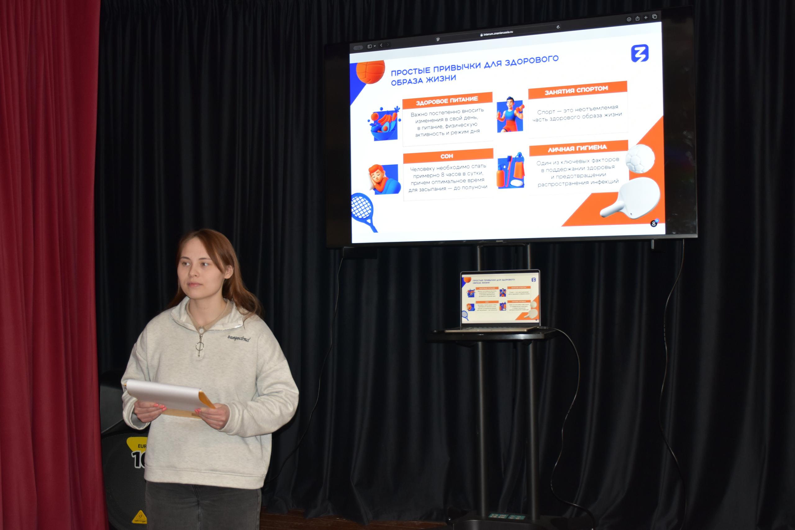 В ходе лекции студентам рассказали о ключевых принципах ЗОЖ: правильном питании, физической активности, режиме труда и отдыха, а также о важности отказа от вредных привычек.
