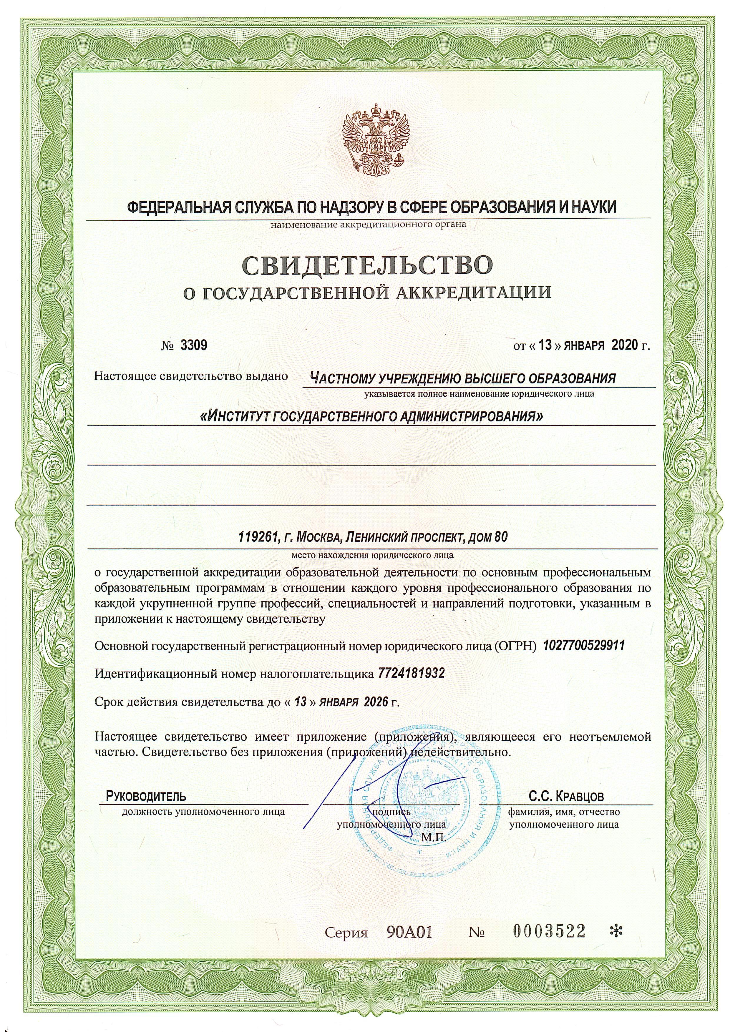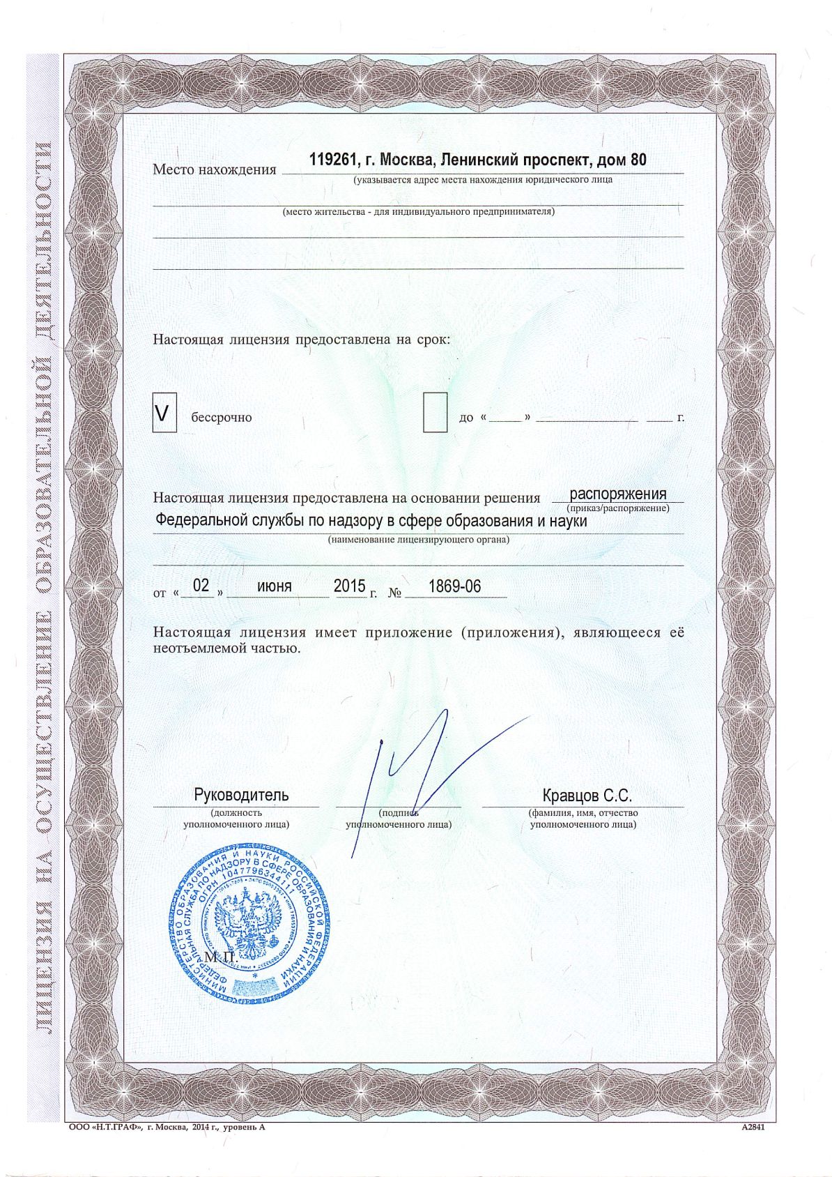 Высокий статус университета подтверждает бессрочная государственная аккредитация