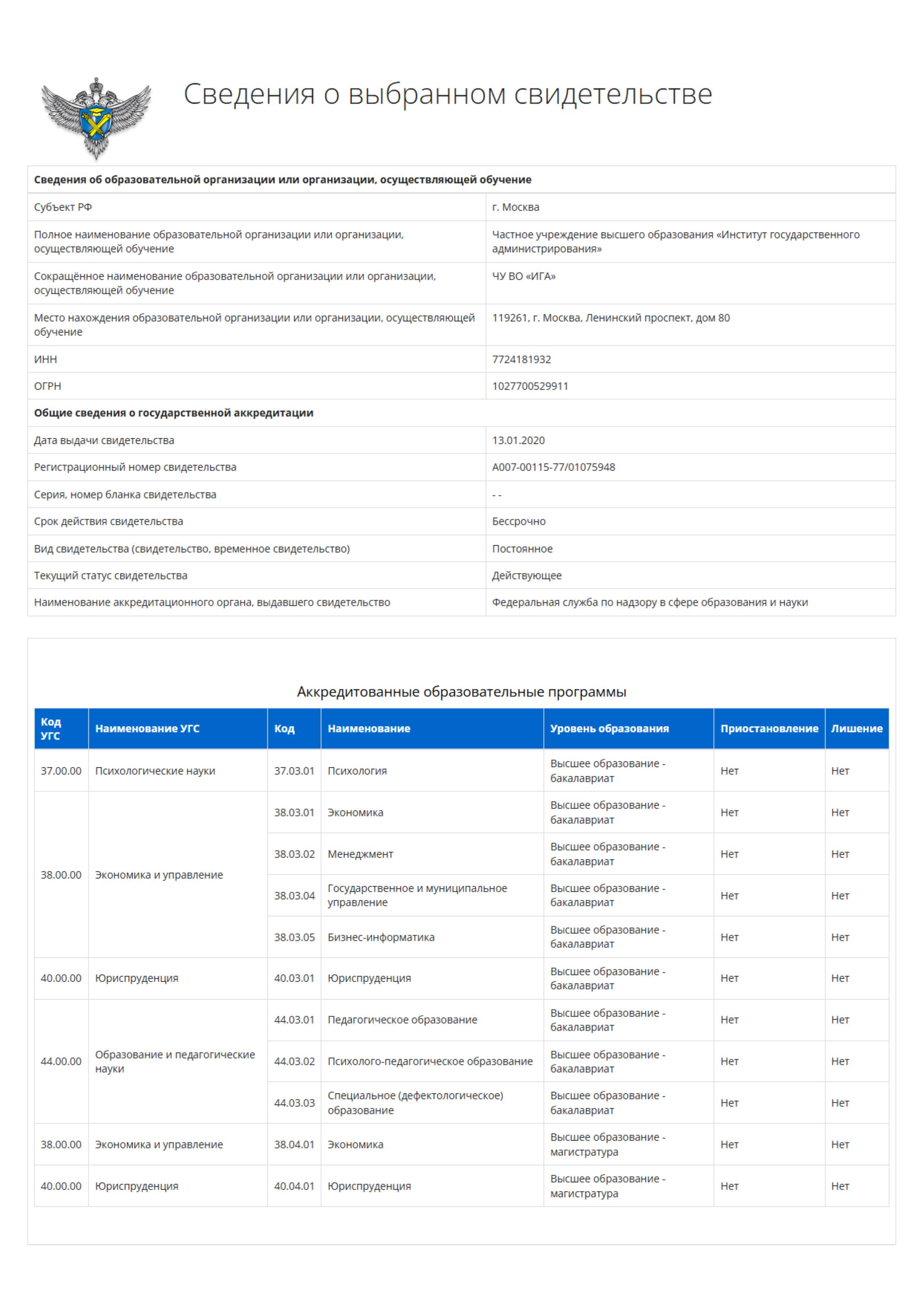 Документы доступны для проверки на официальном сайте Рособрнадзора